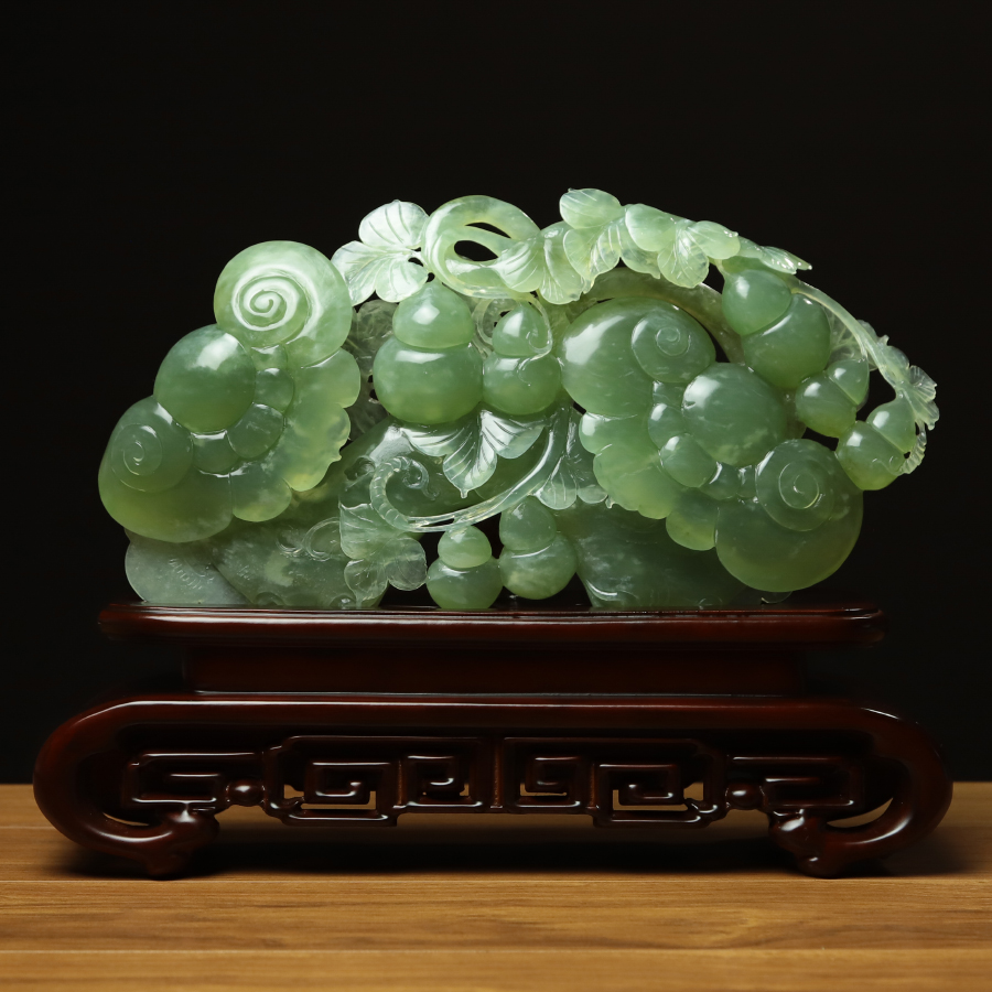 尚品美格 天然玉石岫玉摆件 原石原色精雕吉祥如意 高端礼品EA046