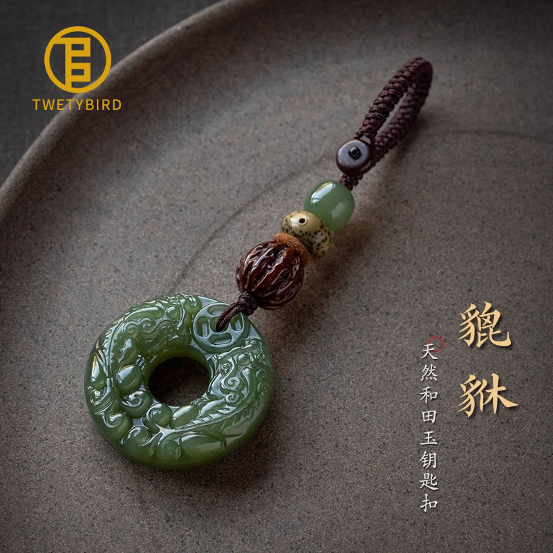 意大利TWETYBIRD天然和田玉双面貔貅平安扣钥匙扣高档车钥匙挂件
